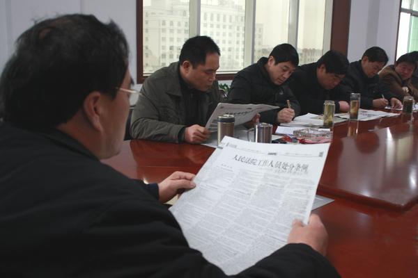 最高人民法院公布《人民法院工作人员处分条例》后,宛城区法院高度重视,于1月29日下午迅速组织党组成员、中层以上领导同志学习条例内容,第一时间贯彻条例精神。