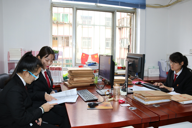 各司其职,紧密配合,科学高效的完成审理任务。该团队成员合理分配工作任务,个人之间既职责分明,又相互配合,充分发挥团队优势,科学高效的完成审理任务。该团队充分借助“互联网+”带来的新动能,充分利用“云法庭”,进行远程开庭。该团队承办的两起原告李某某及原告赵某诉保险公司的案件,两保险公司分别位于郑州、焦作,运用网络开庭既节省时间,又减少了外地当事人来回奔波之苦,得到了当事人的一致好评。
