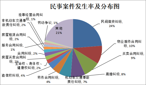 2022年10月1日至2022年12月31日,我院受理民事案件3382件,同比下降20.89%,结案2794件,同比下降16.8%,已结案件中民间借贷纠纷663件,物业服务合同纠纷284件,买卖合同纠纷259件,离婚纠纷225件,机动车交通事故责任纠纷189件,劳务合同纠纷119件,追偿权纠纷104件,生命权、身体权、健康权纠纷62件,房屋买卖合同纠纷60件,合同纠纷60件,房屋租赁合同纠纷49件,非机动车交通事故责任纠纷45件,挂靠经营合同纠纷37件,服务合同纠纷35件,劳动争议33件。
