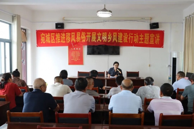 为深入践行新时代“枫桥经验”,进一步推进移风易俗,弘扬婚嫁新风,9月16日上午,南阳市宛城区人民法院组织干警来到宛城区茶庵街道袁黄庄村和樊庄村,开展以“抵制高价彩礼”为主题的移风易俗普法宣传活动,将法律知识与文明理念送到群众家门口。