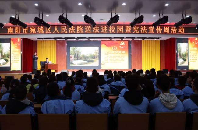 12月4日,河南省南阳市宛城区人民法院组织干警走进南阳市特殊教育学校,以“宪法护航成长,法治守护未来”为主题开展送法进校园活动,通过定制化普法宣讲、互动交流等形式,为学生们送上了一堂温暖而深刻的法治教育课。