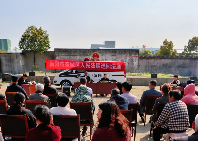 “你这是要去哪儿啊?”“听说法院要在咱们村口开庭呢,我去看看。”4月1日下午,河南省南阳市宛城区红泥湾镇大陈坡村口热闹非凡。南阳市宛城区人民法院红泥湾法庭在此公开开庭审理一起提供劳务者受害责任纠纷,并邀请了人大代表、政协委员现场观摩,大陈坡村区域内多家企业代表、一线职工代表、村民代表等在场旁听。