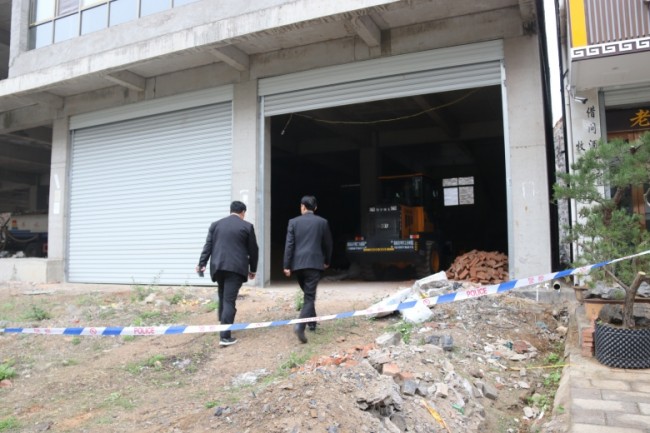 到达现场后,5辆警车一字排开,设置了警戒线。在执行干警查看现场时,案外人王某及其家人赶到现场,执行干警当场再次告知王某:“该房产经由法院拍卖,已由申请人党某接收,请你们配合法院,尽快将房屋腾空,否则法院将依法强制拆除。”